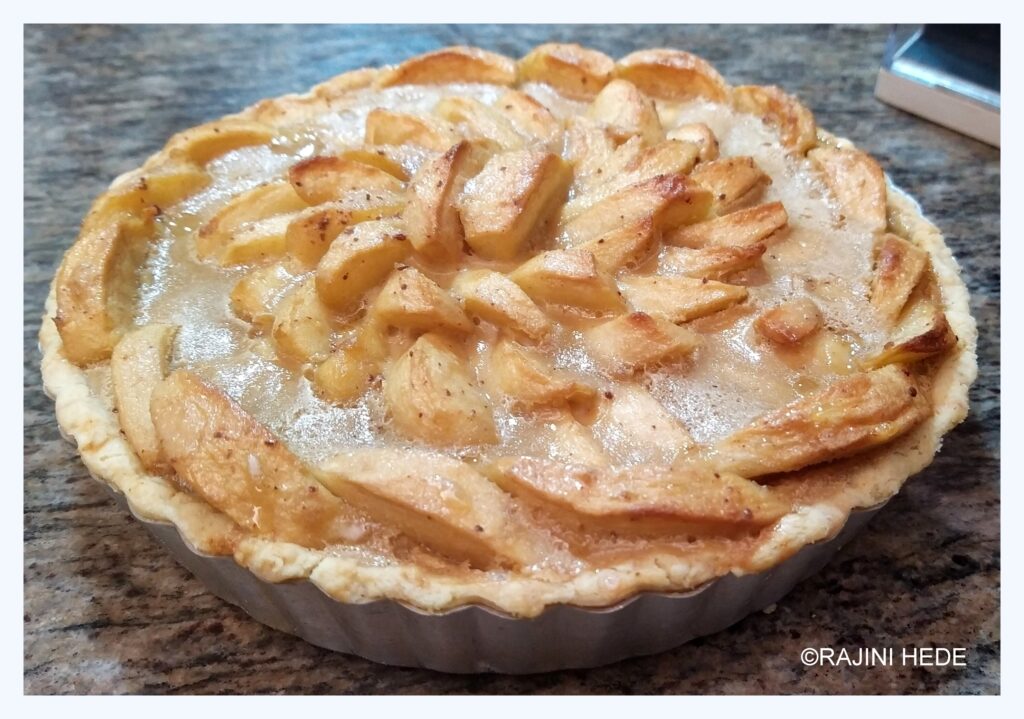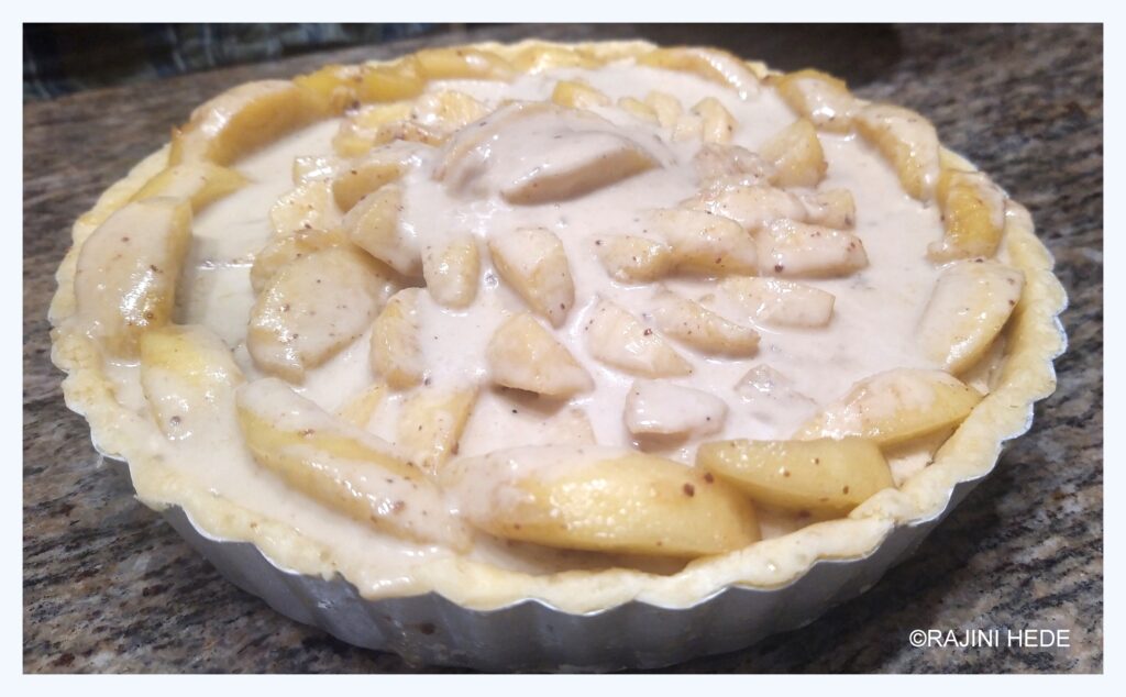 - Layer the cooked apples into the prepared pie tin radially or any other way you like.