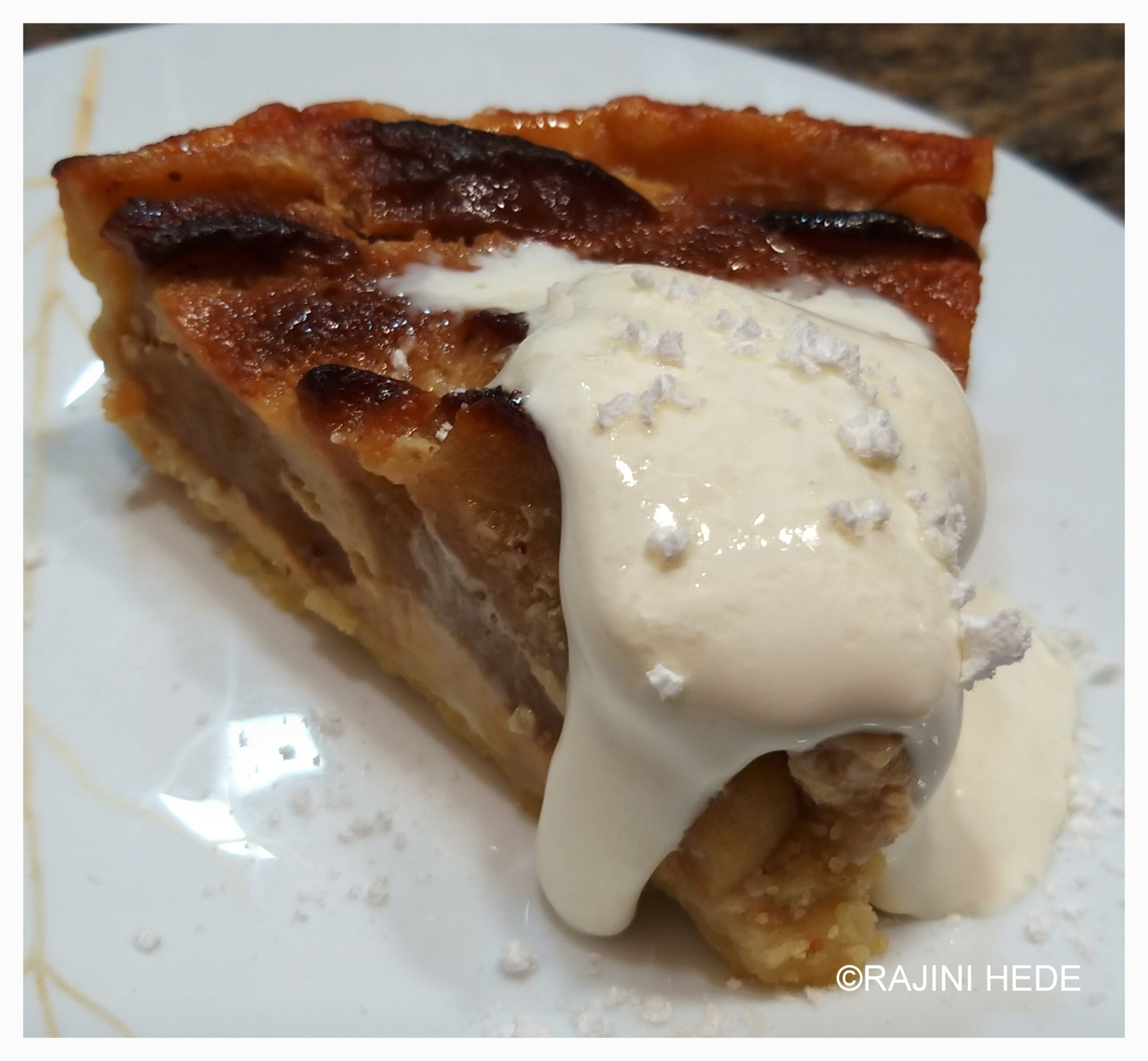 - Pour the chilled custard mix over the apples, ensuring that the apple slices are still visible and peeking out through the custard.