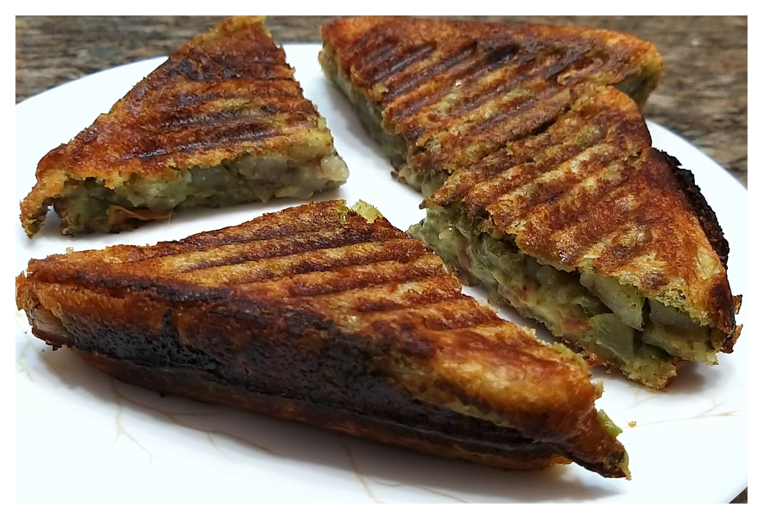 - Using a stovetop or an electric sandwich toaster, grill the sandwich to a nice golden brown. (6)