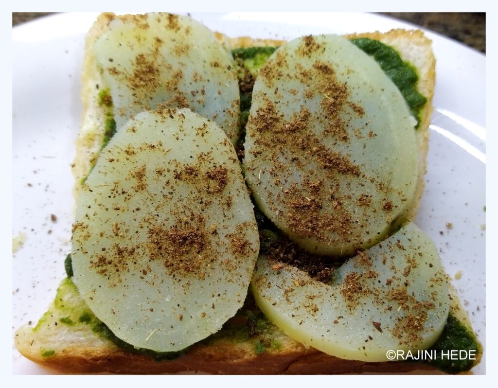- Top up with a couple of boiled potato slices and a sprinkling of Masala. (1)