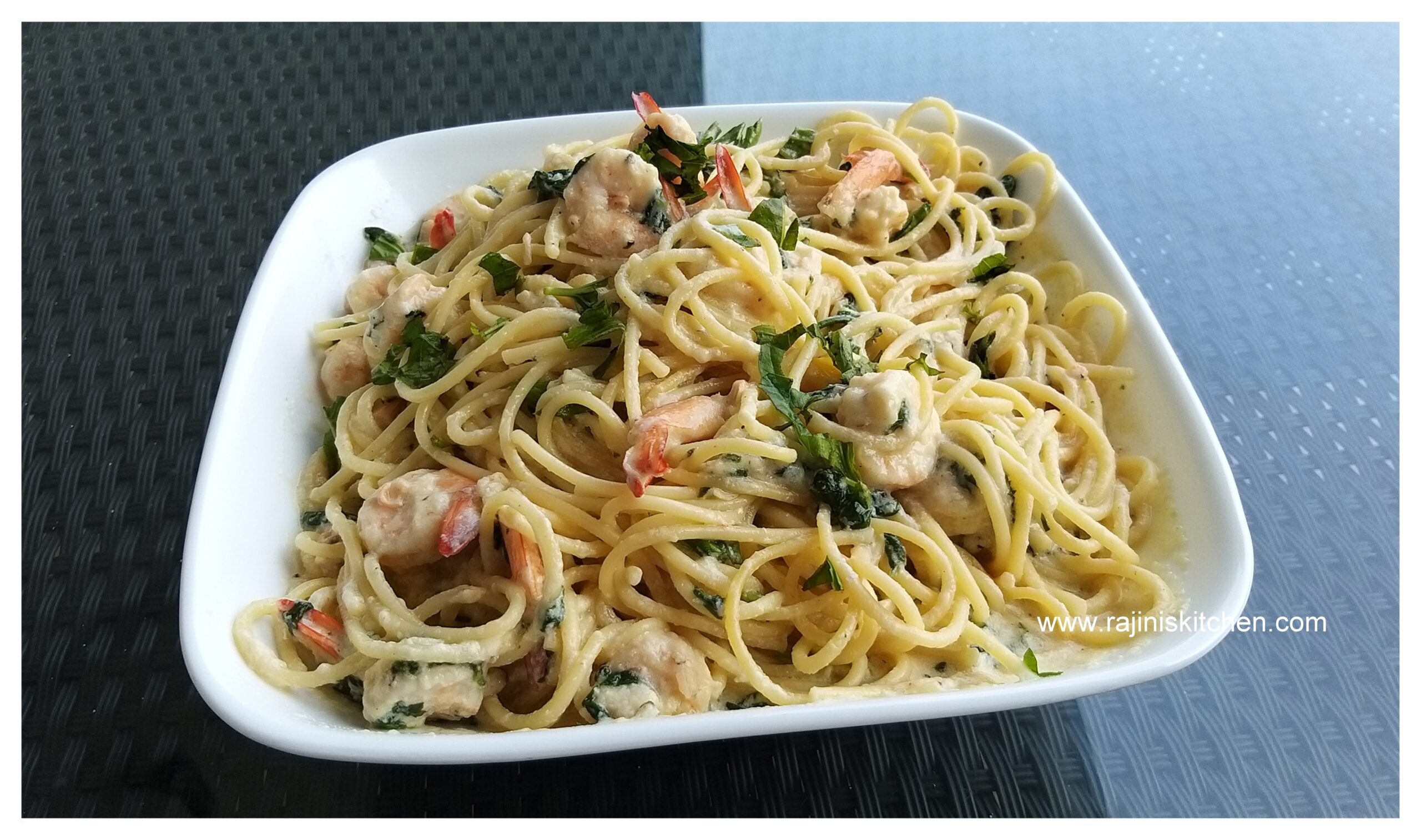 SPAGHETTI WITH PRAWNS AND SPINACH