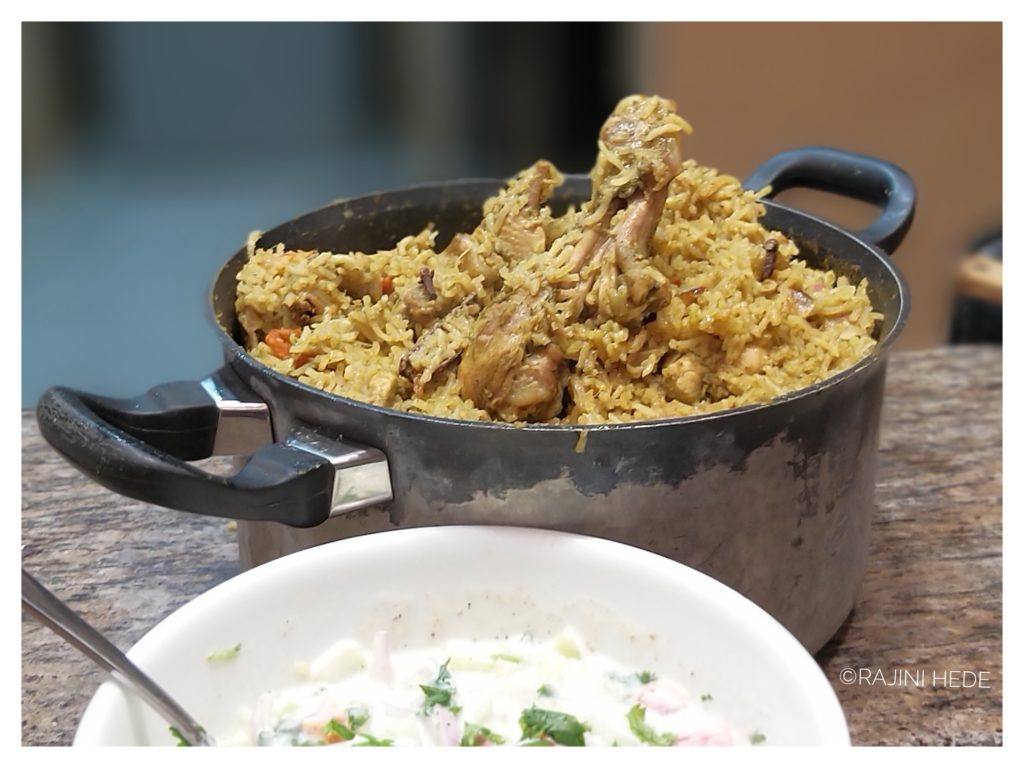 Unlike most biryanis, this one is slightly sticky and spicy, with a hint of sweetness from the addition of coconut milk.