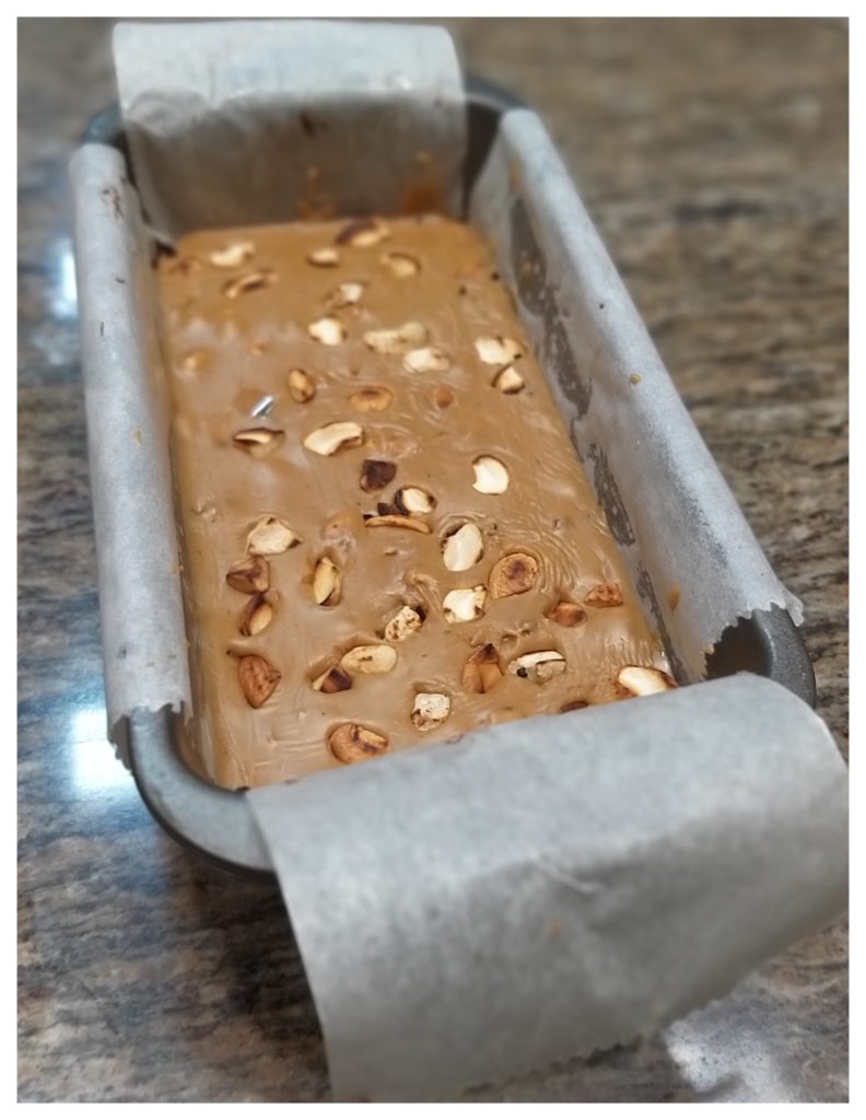 - Prepare an 8″ x 4″ tin by lining it with well buttered baking paper or aluminium foil, leaving enough paper sticking out beyond the tin rim to act as handles to pull out the fudge.