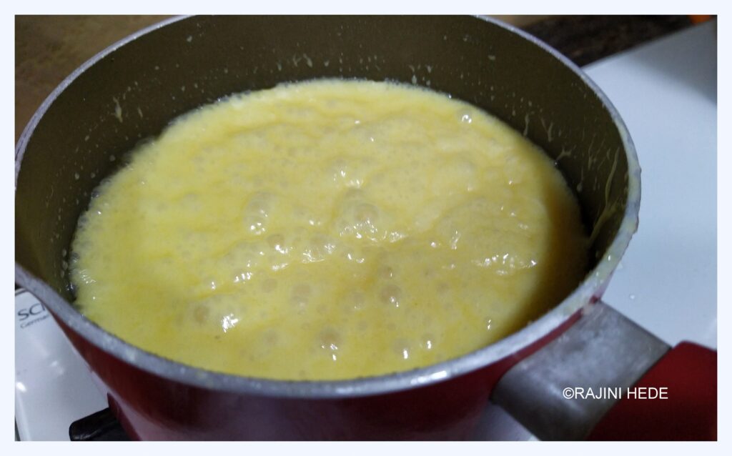 - Stir until the it turns bubbly, scraping off any fudge from the inner edges of the sauce pan and ensuring that it doesn’t burn.