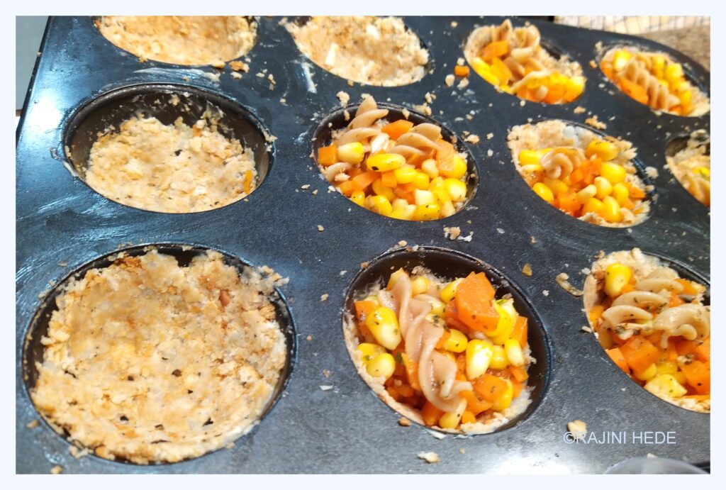 - Pour a little of (Mix C) over each of the muffin cups filled with the stuffing (Mix B). Ensure that the egg mixture fills up the muffin cups.