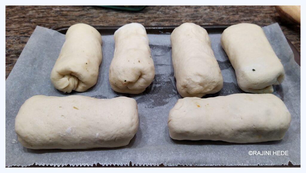 - Place the rolls onto a greased lined baking tray, cover with shrink wrap and set aside to rise for 30 minutes to rise again.