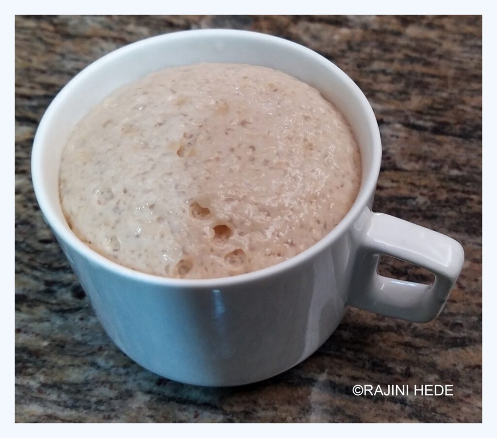 - To ¼ cup of warm water add sugar and stir to dissolve. Add the yeast. Stir well, cover and wait for the yeast-water mix to froth up as in the image below. Do this to ensure that the yeast is good, in other words: alive!