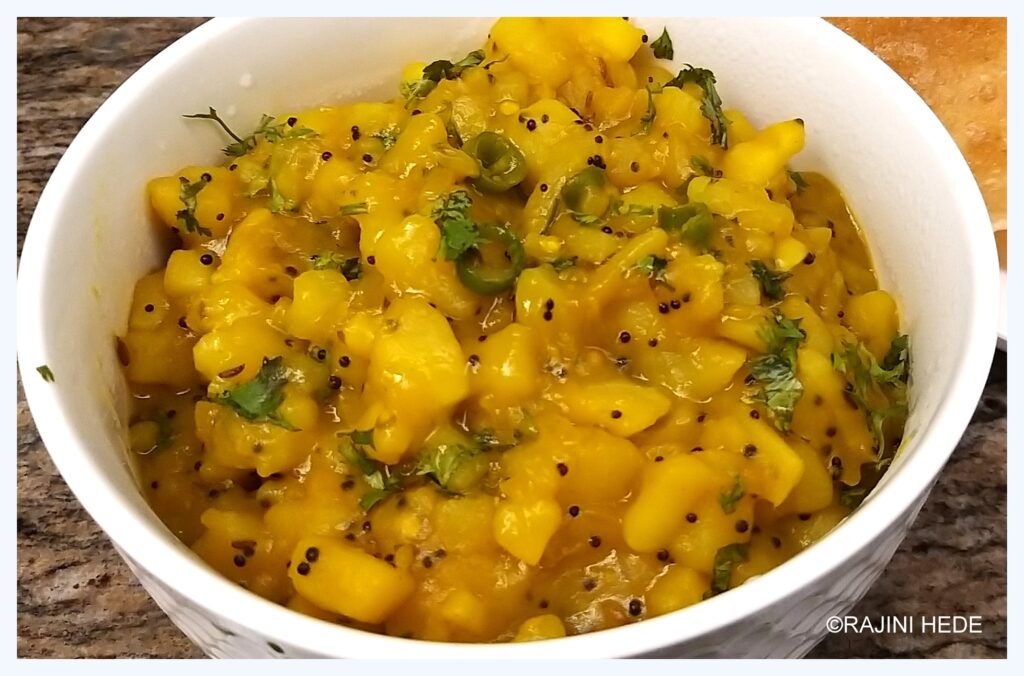 - Mix well and cook stirring every once in a while until the potato pieces are cooked but still whole.