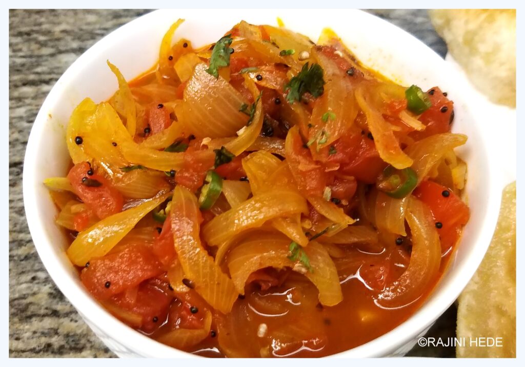 - Add water a tablespoon or two at a time to achieve preferred consistency. You want a moist Bhaaji and not a runny one.