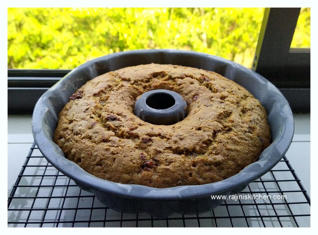 - Immediately pour the batter into the prepared tin, smoothen the top with a spatula and bake at 180ºC for 35 – 40 minutes or until a skewer inserted comes out clean.