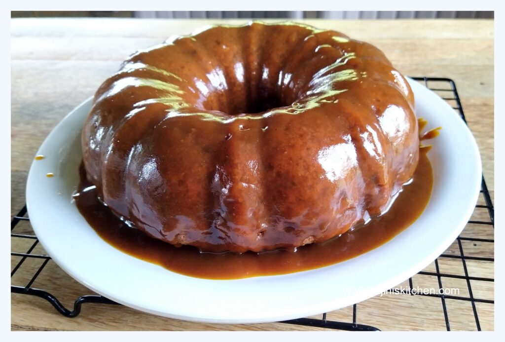 - Turn off the heat and pour enough sauce onto the cake covering it well and spreading it evenly.