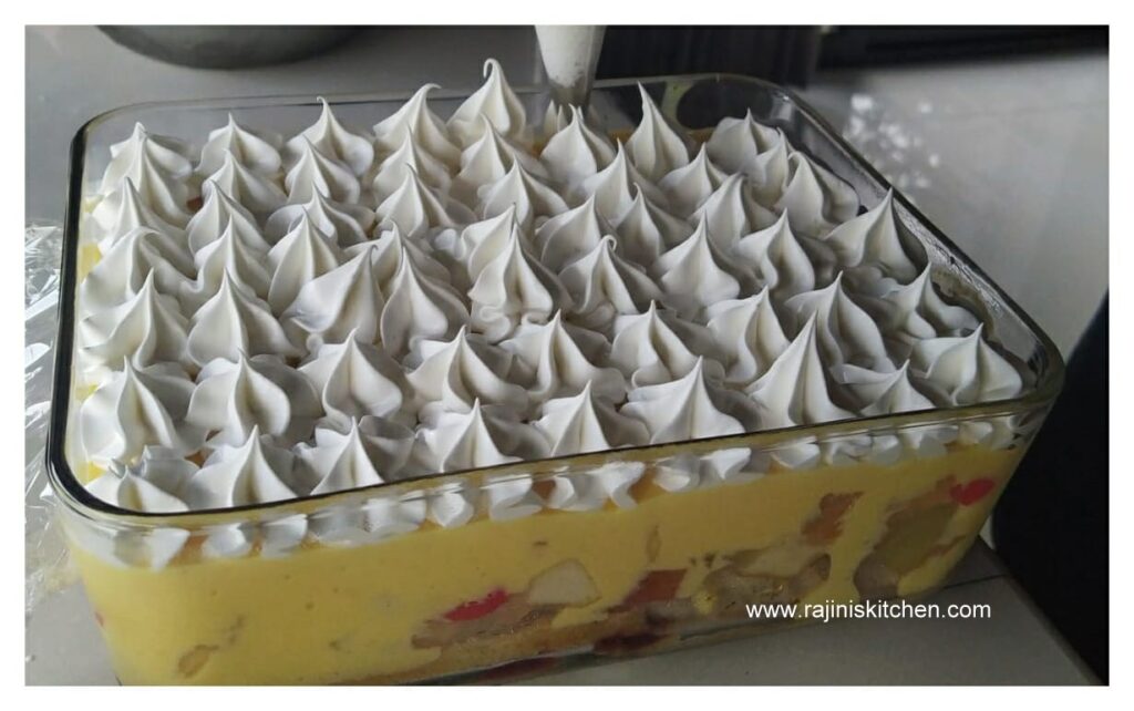- Top up with prepared custard and cover with shrink wrap. Refrigerate until the custard sets.